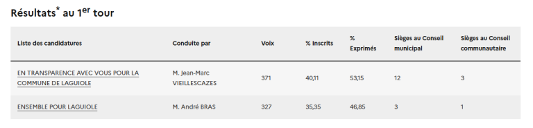 *Résultats provisoires sous réserve d’éventuelles corrections et de décisions du juge de l’élection.