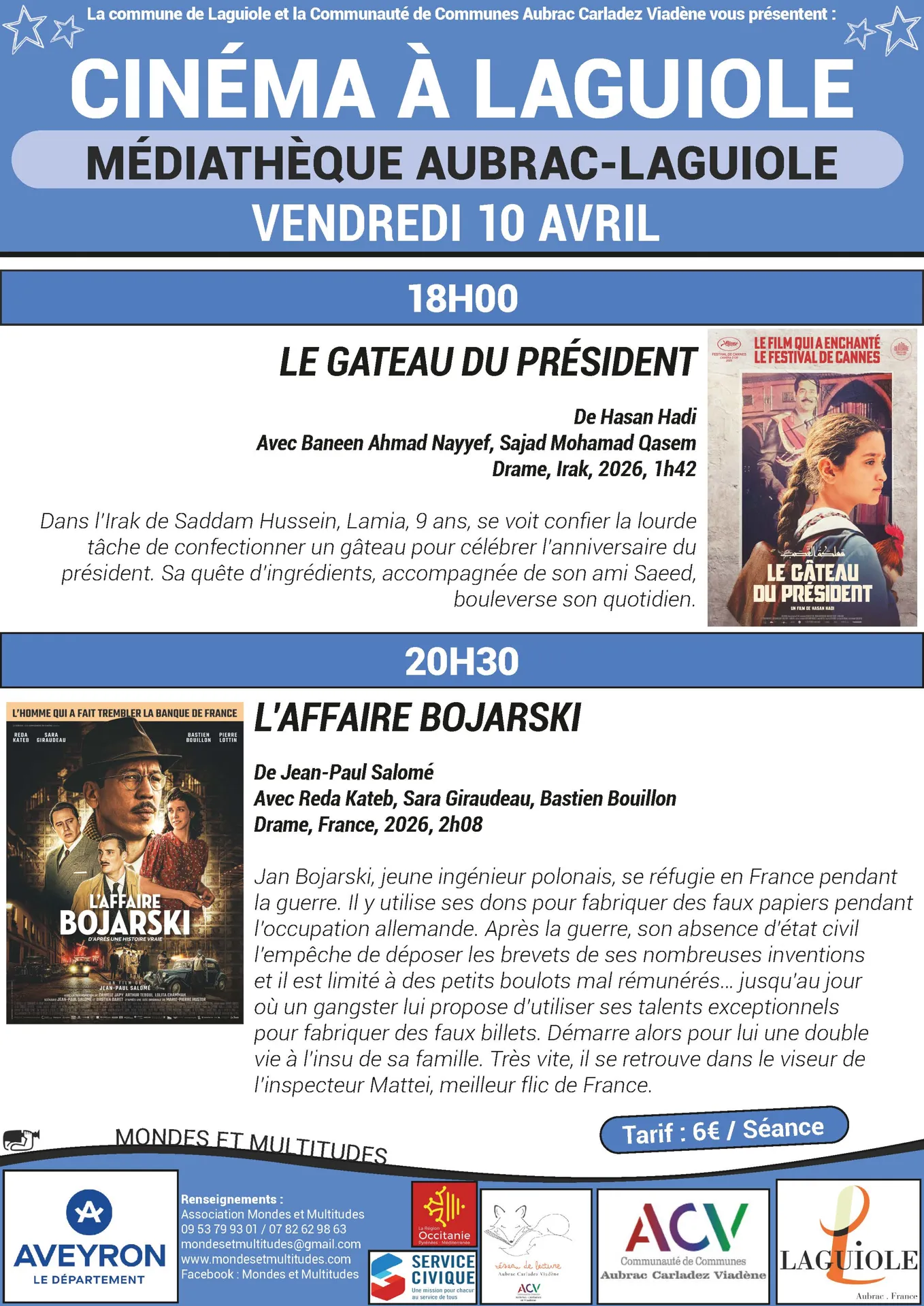 18h : Le gâteau du président.20h30 : L’affaire Bojarski