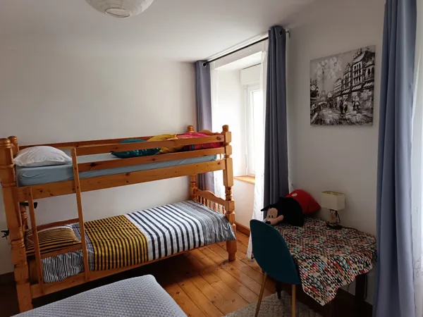 Maison sur 2 niveaux avec deux chambres : 1 chambre avec 1 lit 140, et 1 chambres avec 1 lit 160 et 2 lits superposés 90.