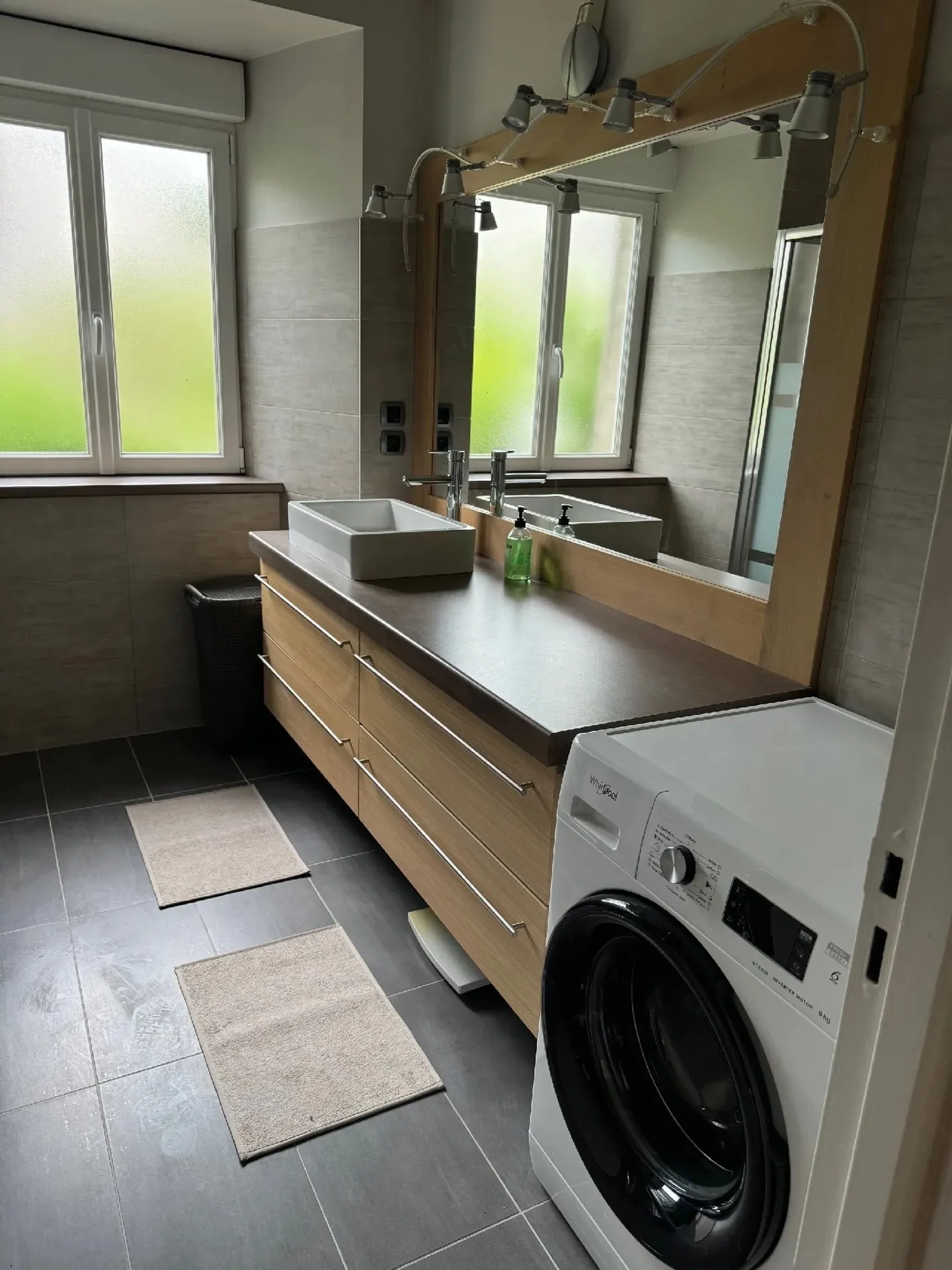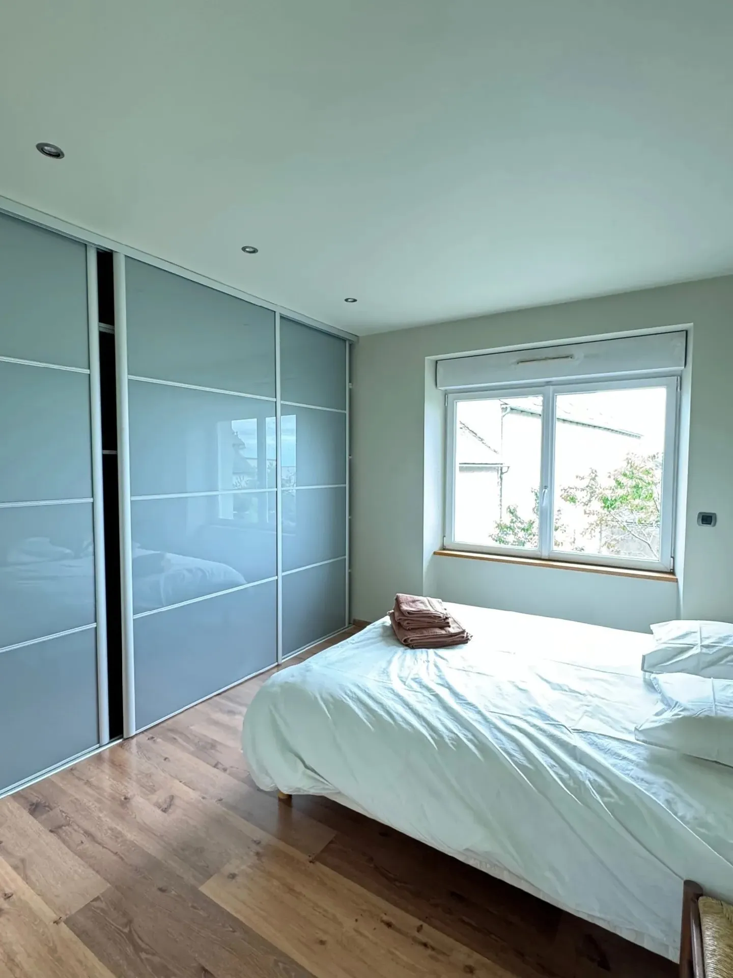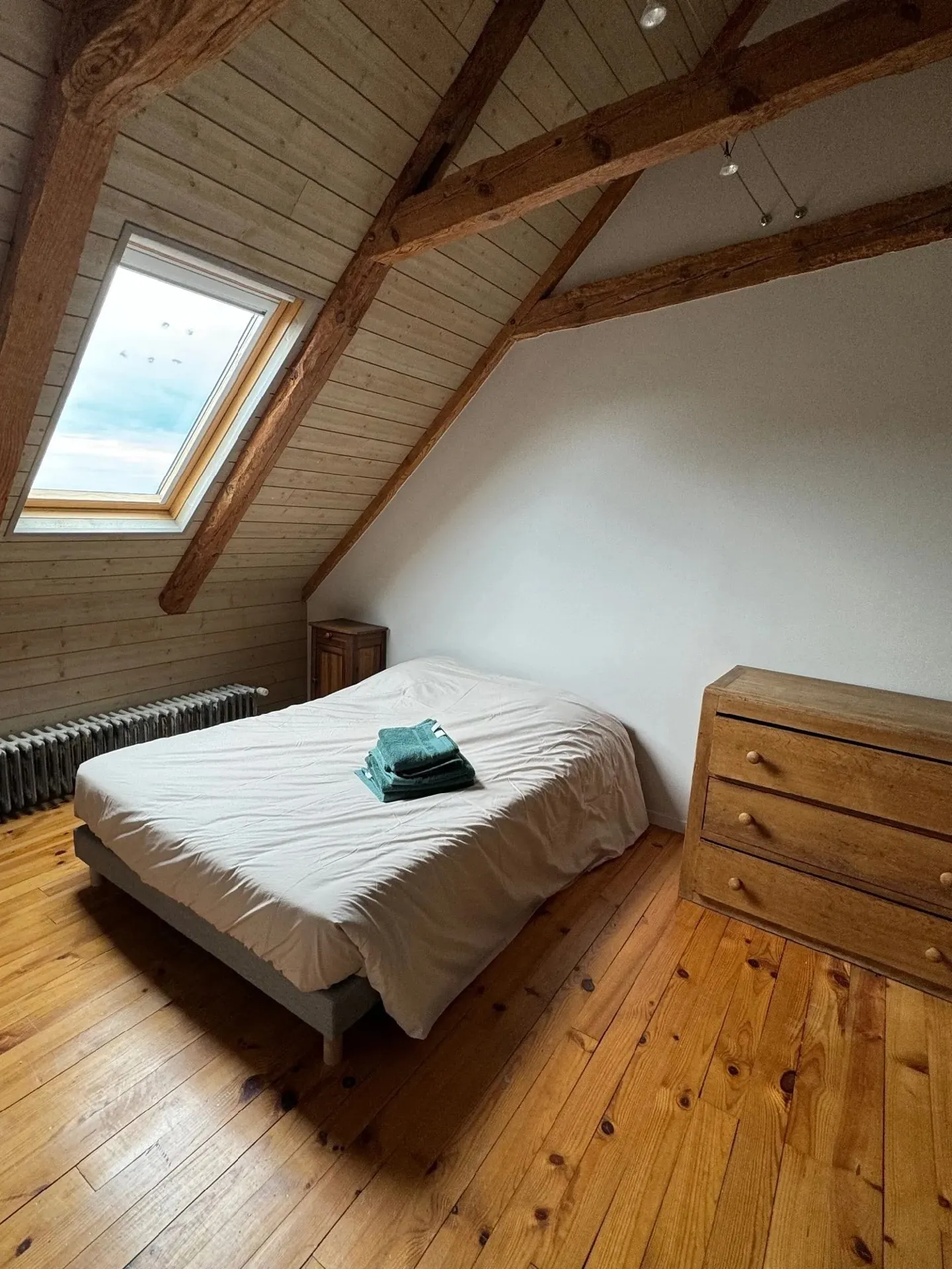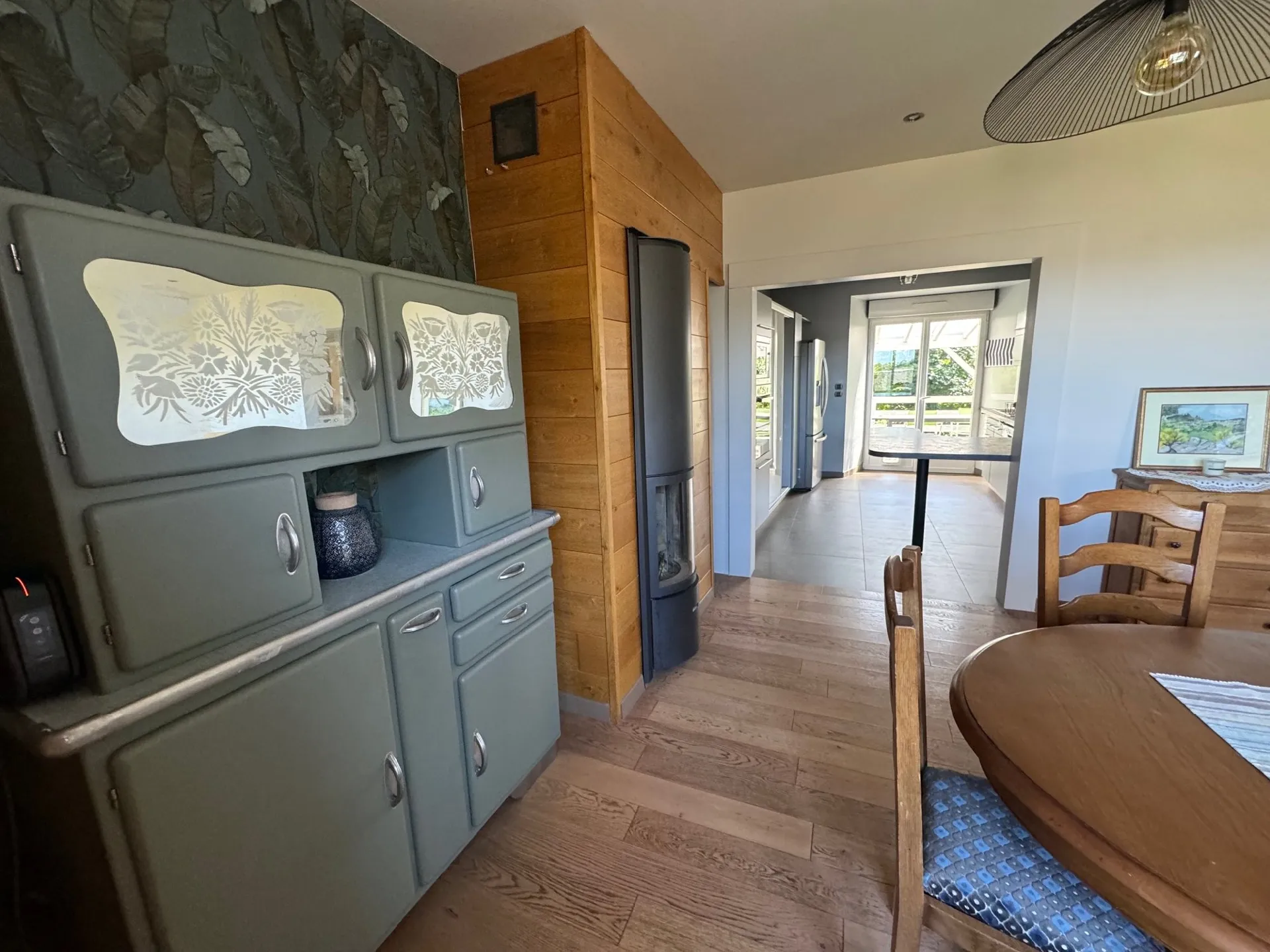 La maison se situe au premier étage accessible par un escalier intérieur. Elle se compose de 4 chambres et deux salles de bain réparties sur deux niveaux. Une cuisine toute équipée et ouverte sur la salle à manger et la terrasse donnant accès au jardin.
