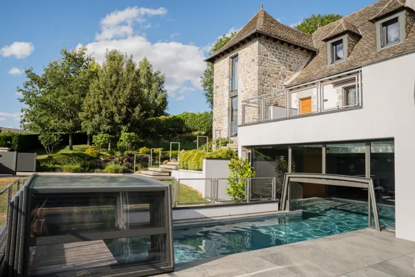 Une villa « Val d’Aubrac » située dans le village de Laguiole, au calme, entourée d’un espace de verdure. Vous serez logés dans une villa traditionnelle rénovée de manière épurée et contemporaine, avec une jolie vue sur la clocher du village. Villa d’une superficie de 330 m² pouvant accueillir 6 personnes et 3 lits supplémentaires (80/190cm) avec piscine intérieure et extérieure chauffée toute l’année.