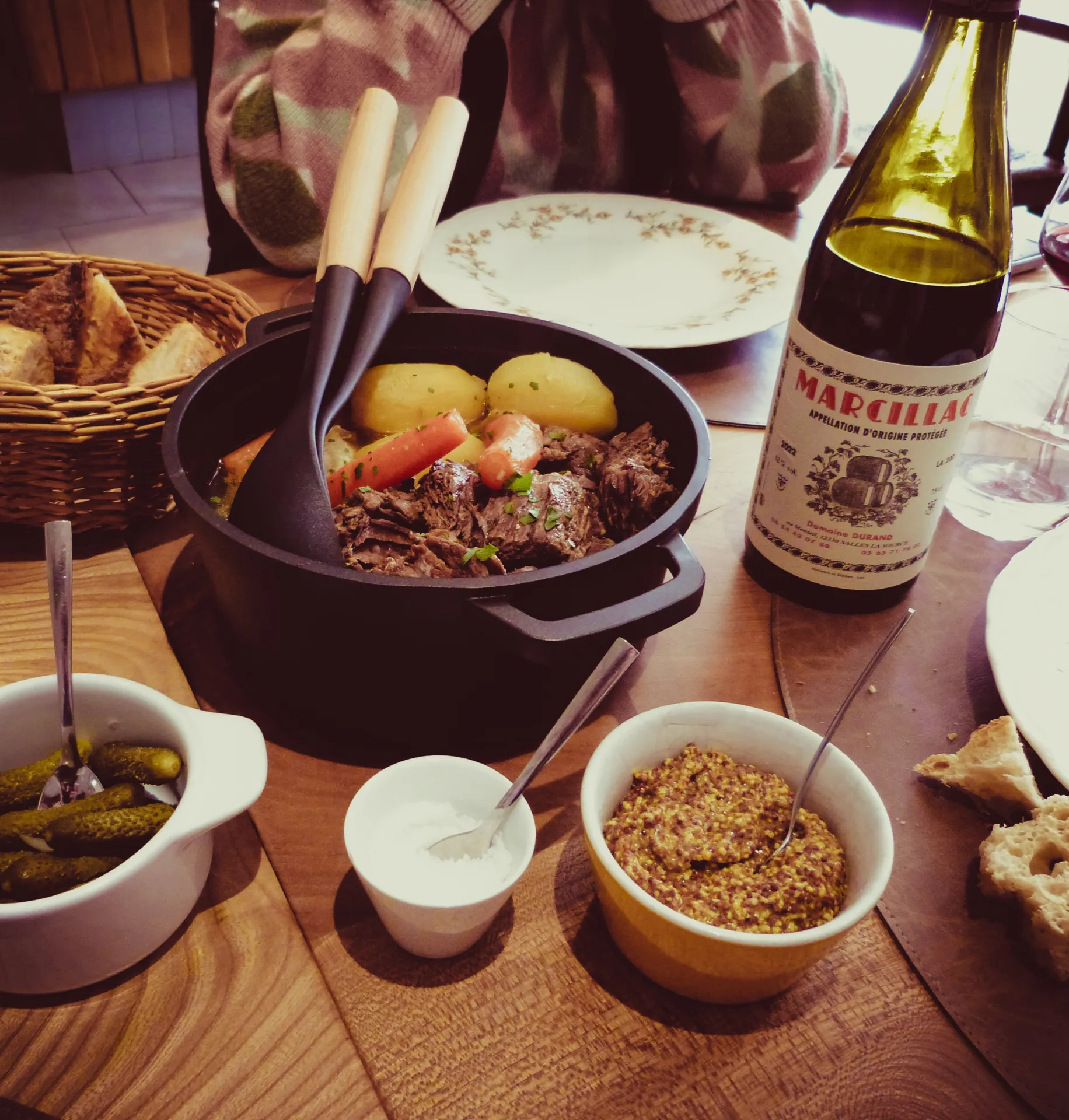 Nous c’est Bérengère et Clément. Passionnés de gastronomie, des bonnes choses et des bonnes bouteilles, nous voulons vous proposer un lieu chaleureux, où la seule envie est de prendre son temps autour de plats réconfortants. Pour cela, nous vous proposons de vous servir directement dans la cocotte posée sur la table, comme chez mamie. C’est d’ailleurs toute notre démarche, vous faire (re)vivre l’ambiance des repas de famille, plein de rires, de bonnes bouteilles et de plats traditionnels.