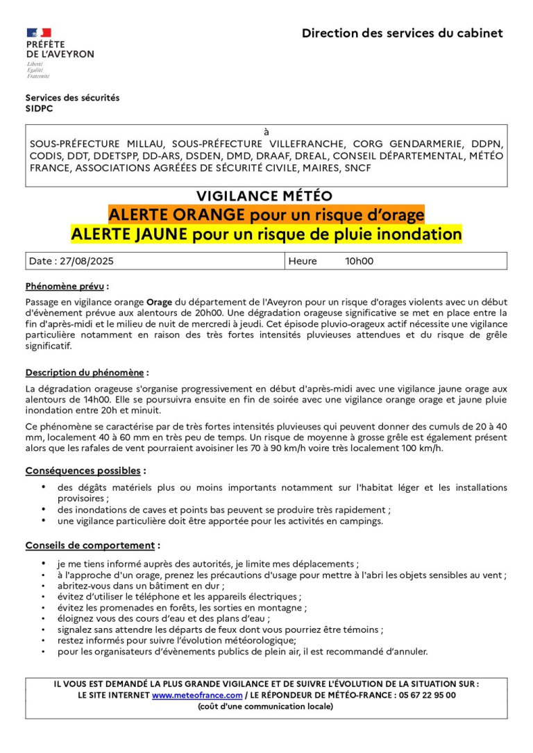 Attention! la vigilance orange orages de ce mercredi 27 août est avancée à 18h.
